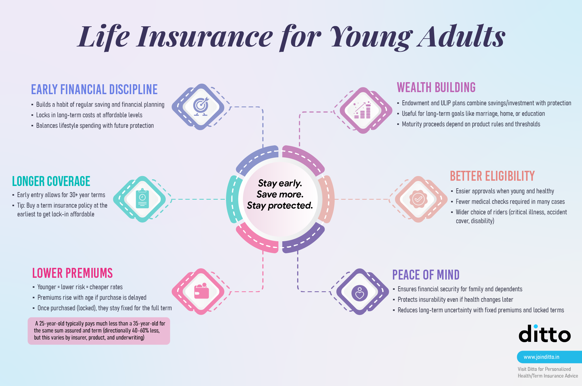 Term insurance is essential for young adults who want to protect their families from unexpected financial burdens. Buying early helps lock in low premiums and secure high coverage without adding unnecessary savings components.